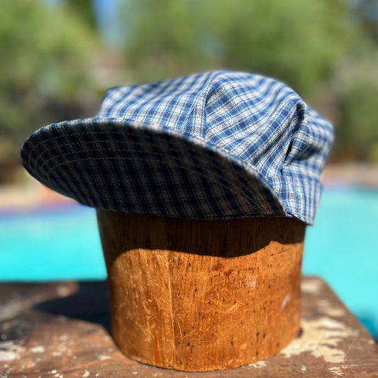 INDIGO PLAID CANVAS UTILITY CAP w/ BUCKLE BACK